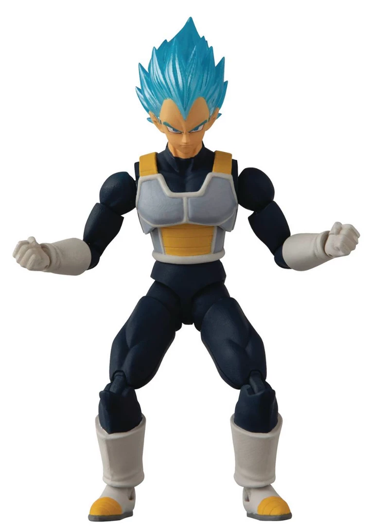 From Bandai America. Re-create epic battles and adventures from Dragon Ball Super with these 5″ figures. Choose from Super Saiyan Blue Goku, Super Saiyan Blue Vegeta, and Super Saiyan Broly.Â
