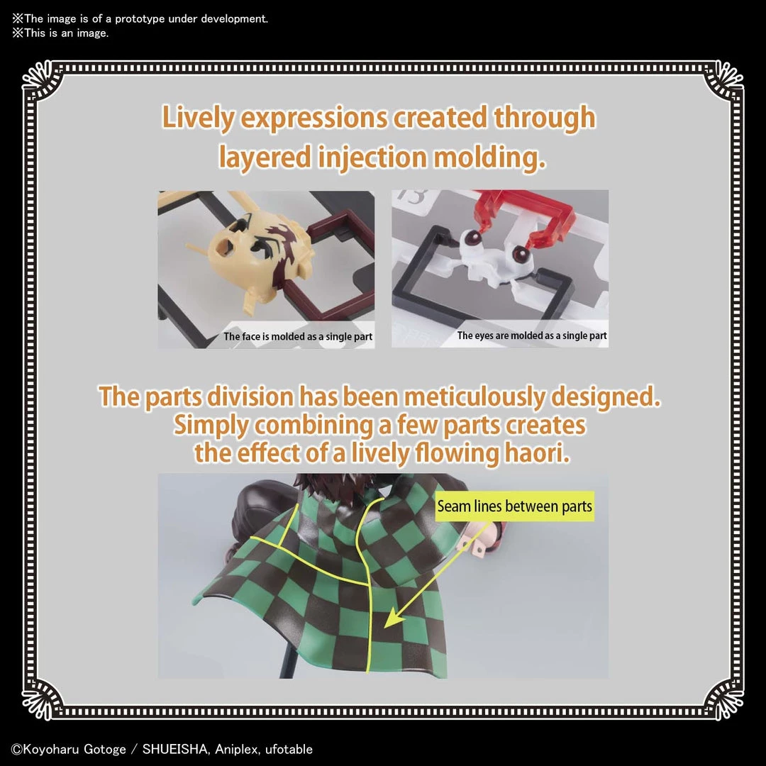 From Bandai Hobby. Bandai brings us a model kit of Tanjiro Kamado to recreate the famous attack, Hinokami Kagura, from episode 19 of the anime! The impressive effect is reproduced with three layers of yellow and clear red parts. Tanjiro’s clothes and hair are all molded in reddish colors to simulate the glow of the flames. The eyebrows and forehead scars are each a different color and are integrated into the face parts so no painting or stickers are required to complete his facial features!