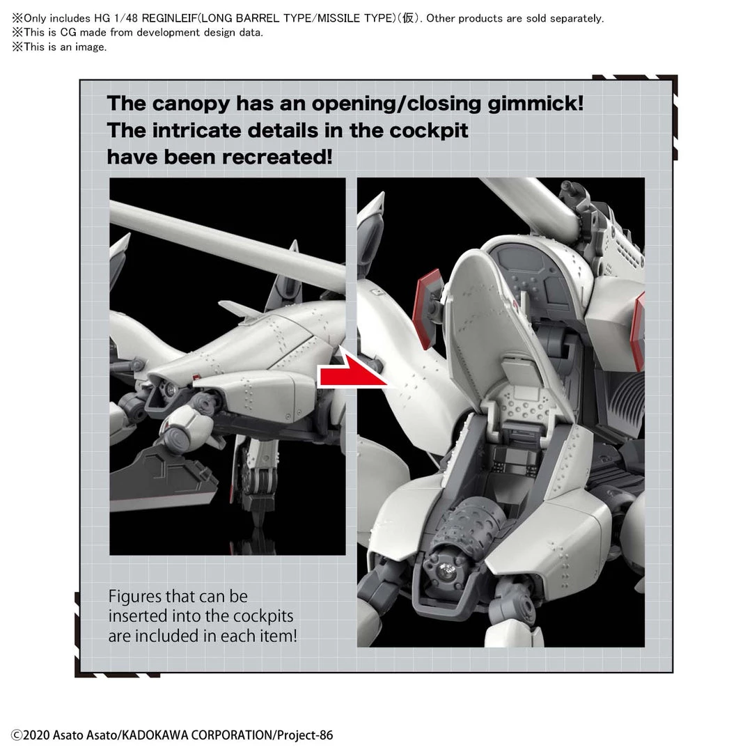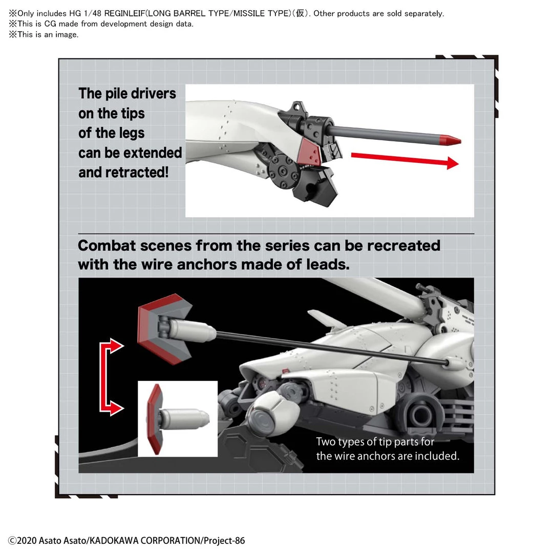 From Bandai Hobby. Reginleif (Long barrel & Missle Type)Â From the Anime 86Â 1/48 scale kit. The highly detailed machine will be recreated based on the designs from the light novel series under the supervision of I-IV.Â