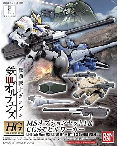 Bandai Japan Bandai Hobby Gundam Iron Blooded Orphans – #001 Option Set 1 & CGS Mobile Worker 1/144 HG Model Kit