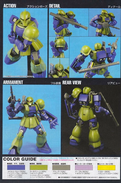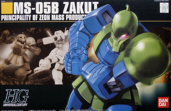 A HGUC version of the Zaku I featuring enhanced joints to replicate its body slam as shown in the original Mobile Suit Gundam. Features Zaku Machine Gun,bazooka, spike shield.