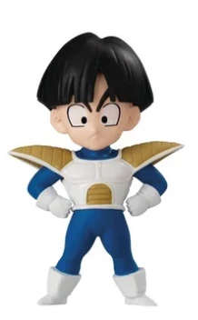 From Bandai Shokugan. The 13th volume of popular Dragon Ball Adverge series features the familiar characters from Dragon Ball Z! Approximately 2″ tall static figures in standing pose.  Collect them all! Look for Super Saiyan Son Goku, Vegeta, Son Gohan, Piccolo, Zarbon, Frieza (in first form) and Dodoria.