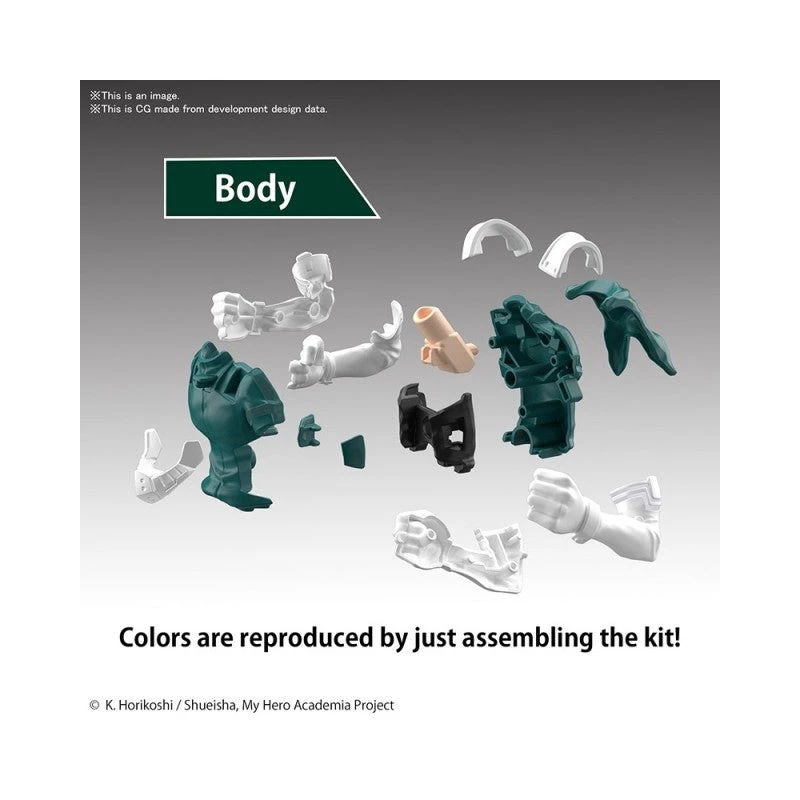 From Bandai Hobby. From My Hero Academia comes an easy assemble model kit requiring no glue, no paint, or even tools to assemble!  Parts twist off and snap together creating an amazingly detailed figure when assembled. 38 Parts!