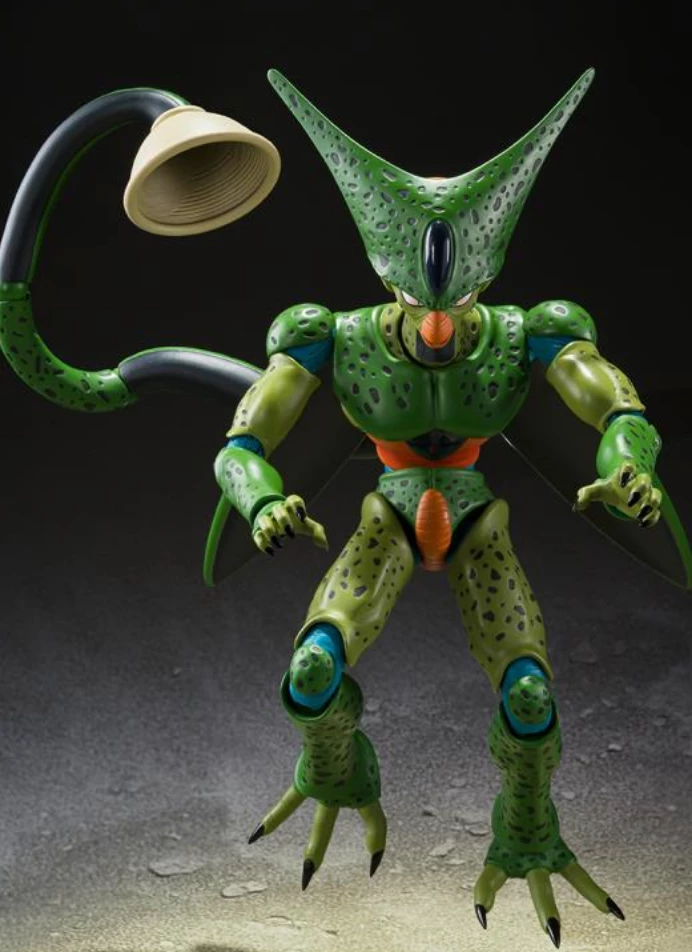 From “Dragon Ball Z,” Cell First Form joins S.H.Figuarts! Options include a head, hands, and a tail designed to replicate his appearance when absorbing enemies! [Set Contents] Main Body, Four pairs of optional hands, Three optional expressions, Optional head, Optional tail set, Optional tail part