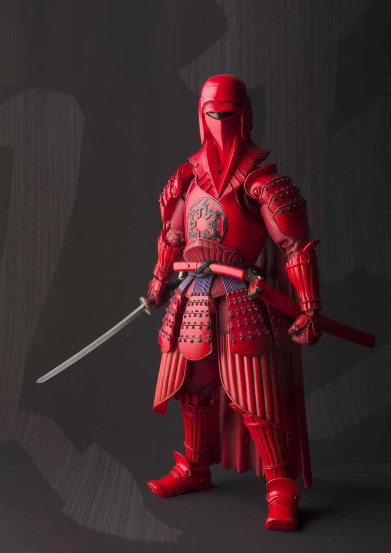 The imposing crimson-robed Akazonae royal guards are next to join the Samurai generals side in this high-quality Japanese feudal take on the Star Wars legacy. The Akazonae royal Guard comes wielding not only the iconic force pike-esque staff, but a traditional Japanese-style Katana as well. The front robe pieces are removable, giving the option of display the Guard the Guard in a Samurai armor fashion.