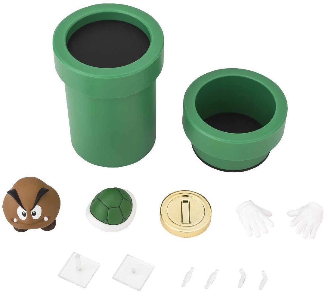 From Bandai Tamashii Nations. Take your SH Figuarts Mario figure to an amazing level with the SH Figuarts Diorama Play Set! This fantastic set allows you to take full advanDescriptione of SH Figuarts Mario (sold separately) and features a variety of option parts to enhance the action figure posing experience. Diorama Play Set A features 2x pipe parts, pipe adjustment parts, a Goomba, a coin, 2x coin stands, a green shell, interchangeable hand parts for holding green shell, and green shell connecting parts. The smaller pipe measures 3-inches in diameter x 1 1/2-inches tall while the larger pipe measures 3-inches in diameter x 3 3/4-inches tall.