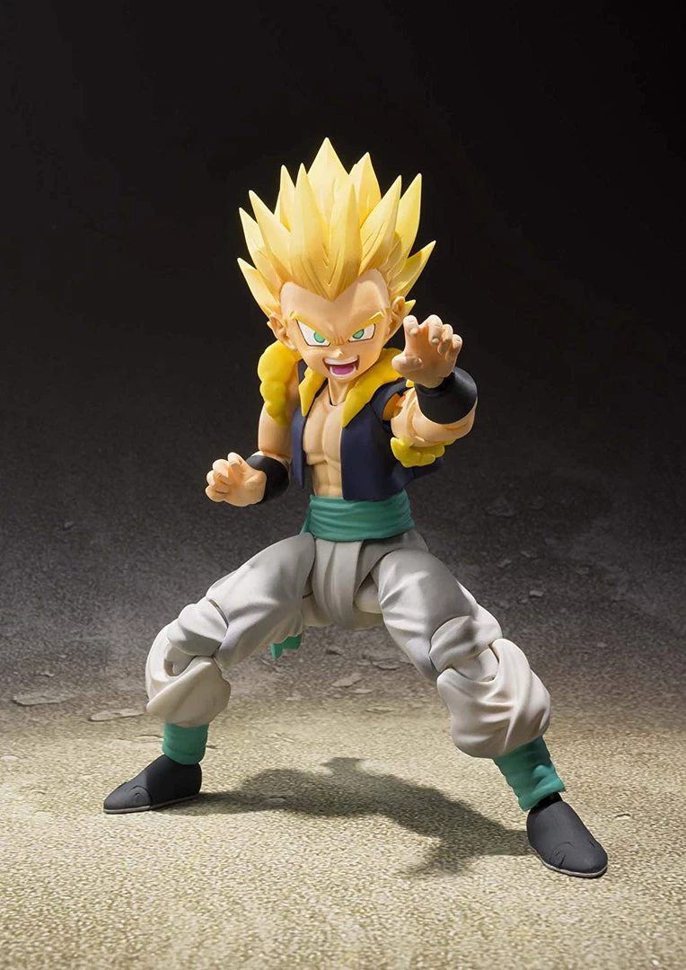 Fusion! s.H.Figurarts is proud to announce Gotenks. A favorite of fans, he’s cocky — and strong enough to back it up! this figure features both incredible posability and accurate sculpting, with translucent parts for added realism in his Super Ghost and galactic donut attacks! the set includes two pairs of left and four right optional hands, two optional expression parts, Super Ghost kamikaze attack parts, galactic donut parts, galactic donut effect stand, and a stand for the figure.