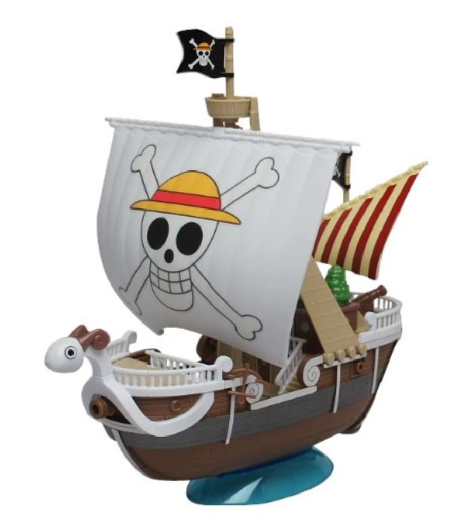 The Going Merry joins a new series of 6″ model ships from “One Piece”. Its compact size makes it easy to display and requires no tools to assemble. Through the use of pre-colored plastic and stickers there’s no need for paint. You can re-create the ship with sails unfurled or without sails. Includes a ocean surface effect part. Compatible with the action base 2.