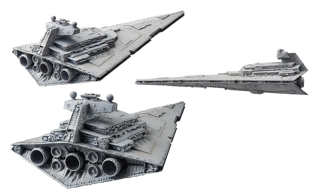 From Bandai Hobby. The iconic Star Destroyer has arrived in 1/14500-scale. While small in size, the Imperial Star Destroyer has fantastic detailing and comes with its own clear display stand.