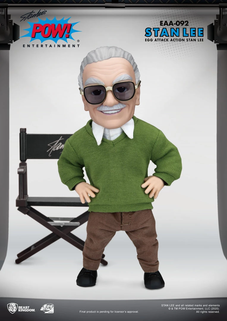 From Beast Kingdom. Excelsior! The de facto father of all that is Marvel, Stan Lee, is ready to make his guest appearance in your EAA collection! Beast Kingdom presents the EAA Stan Lee, a highly articulated 6-inch action figure of the main-man of Marvel himself! Using real fabrics, he is seen sporting his signature white shirt, khaki trousers, dark blue jacket, and green sweater. Two head sculpts allows collectors to pose Stan with different expressions. Apart from the three pairs of replaceable hands, the set includes one Stan Lee characteristic hand and one director’s chair for fans to enjoy one of Stan‘s most famous poses. Finally what Stan Lee set would be complete without his legendary oversized sunglasses! Make sure this set is added to your collection today, and celebrate an iconic figure in the world of the MCU and Marvel Comics!