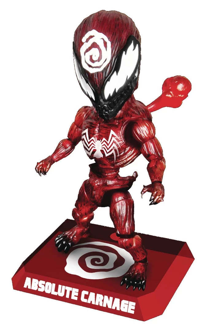 From Beast Kingdom. Let there be carnage! The EAA series of 6-inch, highly articulated action figures under the Beast Kingdom Entertainment Experience Brand takes on the villain Carnage in all his wild glory! During the now-classic Maximum Carnage comic run, the symbiotic ‘Carnage’ goes on a killing spree in New York, bringing together a host of characters from Spider-Man to Shriek, the psychic hero to try and stop the red menace. A riveting story filled with twists, turns, and a whole lot of carnage! The EAA (Egg Attack Action) brand of highly stylized and articulable action figures from the Beast Kingdom, takes on the crazed villain from outer space in a limited edition release. Using the very best in manufacturing techniques, Carnage is brought to life with immense attention to detail. A translucent body showcases the otherworldly visage of the angry alien, with a light-up function in the Carnage head sculpt to really showcase his demonic look. Fans of the Spider-verse would be as crazy as Carnage to miss out on this classic Marvel villain.
