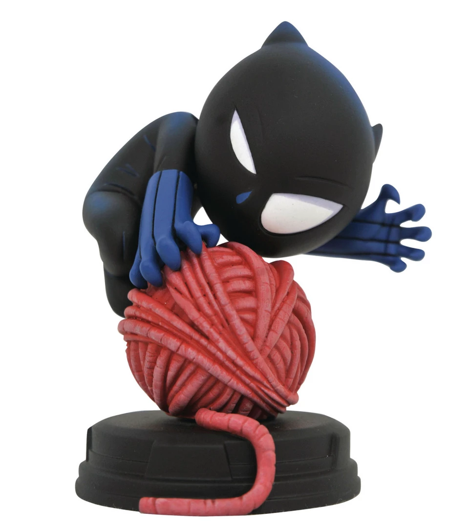 A Diamond Select Toys release! The Black Panther sinks his claws into a giant ball of yarn in the newest animated-style Marvel statue! Based on the variant cover to Black Panther Vol. 6 #1, with art by Skottie Young, this approximately 4″ statue comes packaged in a full-color box with a certificate of authenticity. Sculpted by Gentle Giant Studios!