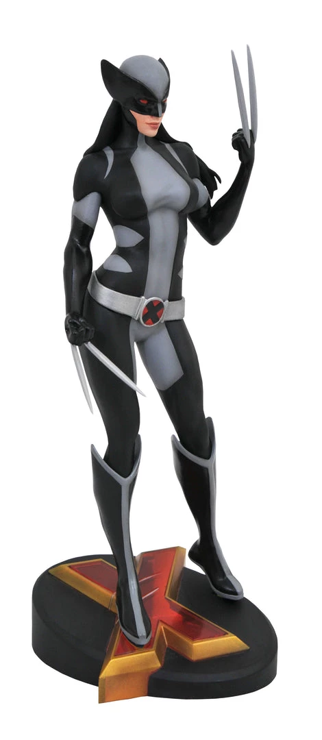 Sheβs back in black β and grey! Laura Kinney, a.k.a. X-23, a.k.a. the all-new Wolverine, changes her clothes in this Comic-Con-exclusive Marvel Gallery PVC Diorama. Striking a menacing pose in her grey-and-black X-Force uniform, Laura stands approximately 9 inches tall atop an X-logo base, and comes packaged in a full-color window box. Designed by Uriel Caton, sculpted by Sam Greenwell. Limited to 6,000 pieces. A Diamond Select Toys release!