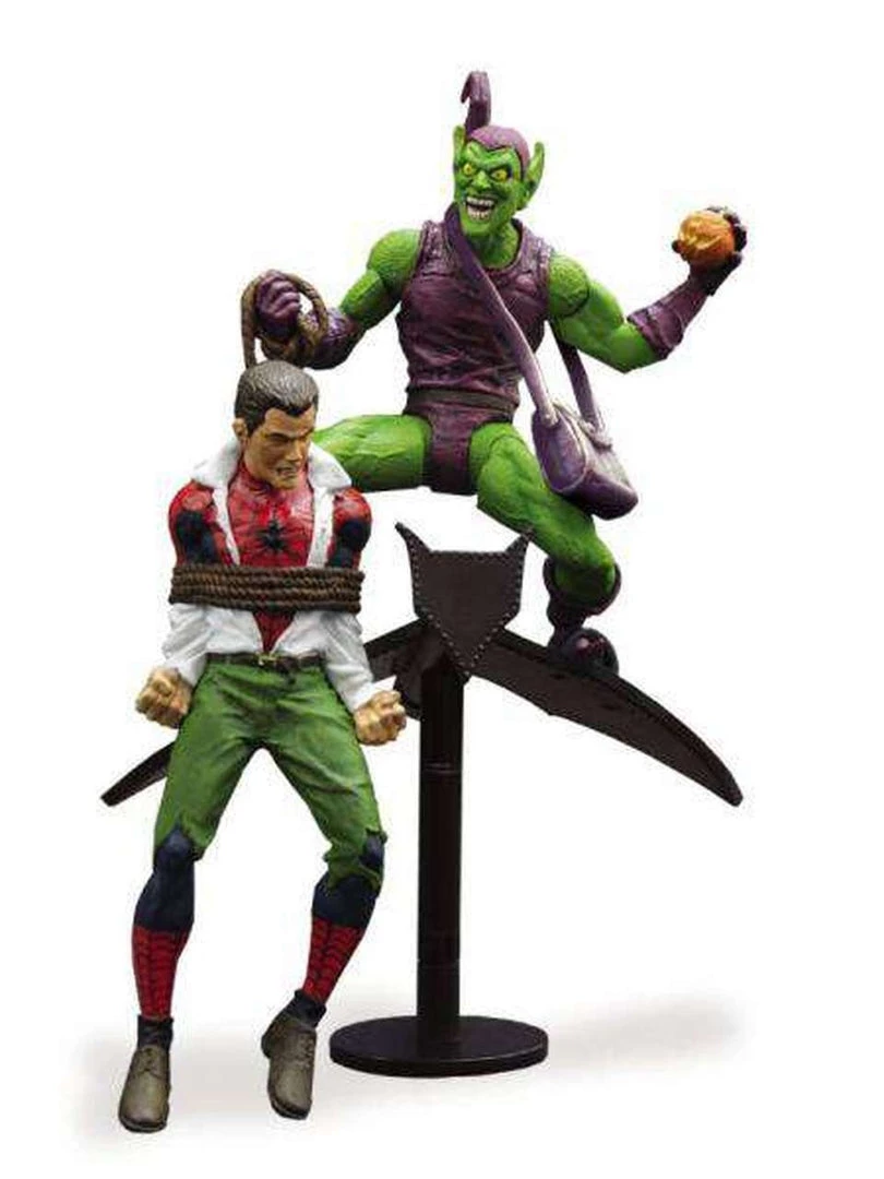 Back by popular demand comes this classic Marvel Select figure, available again for all who missed its original release! The Green Goblin includes a bound and defeated Peter Parker figure and goblin glider to re-create the cover scene from Amazing Spider-Man #39!