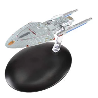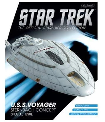 The U.S.S. Voyager Concept was created by Rick Sternbach in the early stages of coming up with a new, sleeker and smaller ship than the Enterprise-D for the fourth Star Trek series. Sternbach’s early Voyager sketches show a streamlined vessel with a dart-like hull, an extended engineering section, and runabout-like warp pylons in the back. Parts were added and removed and gently curved hull contours were worked on over numerous weeks and months to bring the U.S.S. Voyager known as today.