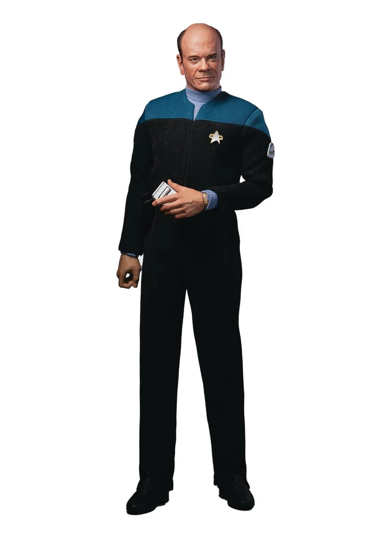 From Newson International. EXO-6’s second entry from Star Trek: Voyager is The Doctor, the Emergency Medical Hologram activated when the ship was transported to the Delta quadrant. Never designed to be the permanent medical solution for a starship, the holographic doctor on Voyager not only served as the lost ship’s chief source for medical expertise but became a beloved character in his own right. This 1/6 scale figure re-creates this iconic character in exquisite detail. Standing approximately 12″ tall, every element, from his 24th century jumpsuit to his shoulder mounted mobile emitter, is authentically reproduced. The original portrait sculpt of Robert Picardo as the Doctor has an authentic, hand-painted likeness. He comes equipped with: Hypospray including 3 different vials, Medical Tricorder with a removable scanner, Mobile Emitter, and a PADD (Personal Access Display Device).This fine collectible figure is a perfect addition to your EXO-6 Star Trek 1/6-scale figure collection!