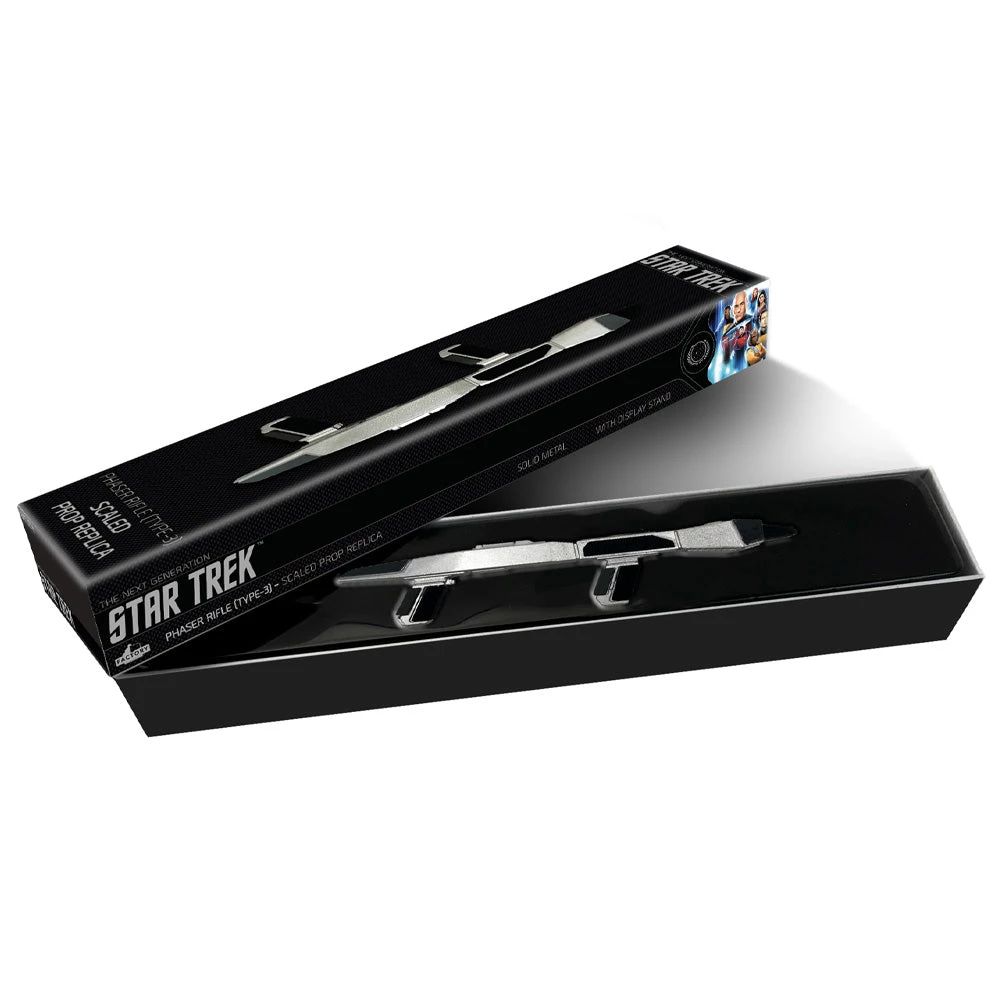 From Factory Entertainment. A high quality, officially licensed scaled prop replica of the Type-3 Phaser Rifle from Star Trek! This stunning 7-inch heavy duty scaled prop replica is molded out of solid metal, comes in collector packaging and features a display stand. All Scaled Prop Replicas are available at an entry-level, affordable price while not skimping on the fine details that collectors have come to expect from Factory Entertainment’s full scale replicas. Collect them all!