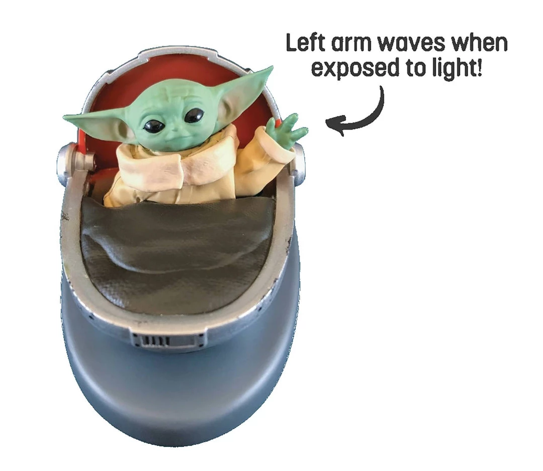 From Fanwraps.ย This solar powered little bounty from theย Mandalorianย is stronger than you think! Attach the child waver to your dashboard so this precious cargo can flourish when exposed to light. Features Waving action, solar powered, highly detailed accurate sculpture from source material. Affixes to dash with hook & loop.