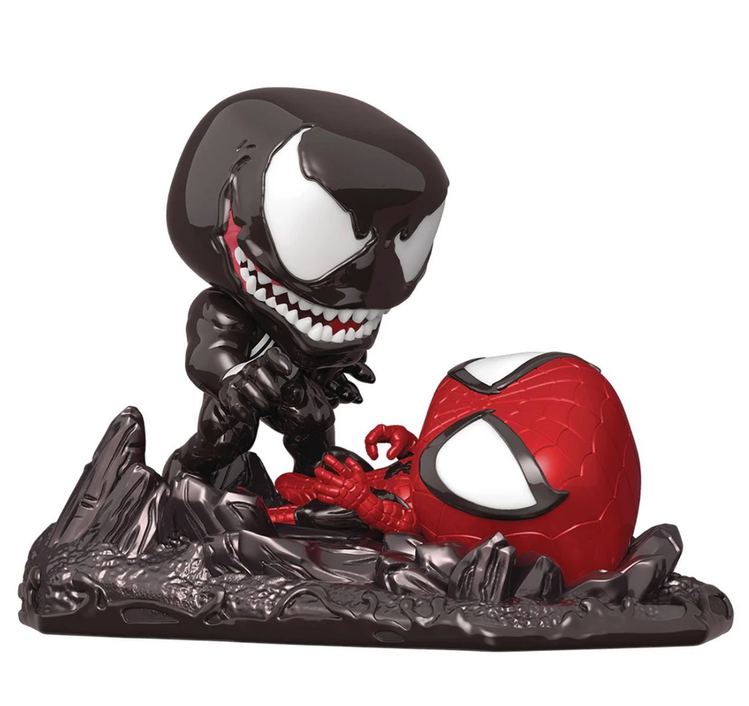 From Funko. A PREVIEWS Exclusive! An epic Marvel Comics battle is recreated in the equally epic Funko Pop! Style with this PREVIEWS Exclusive Pop! Comic Moment Spider-Man Vs. Venom! Featuring a special rocky diorama base, this Pop! Comic moment comes packaged in a window box, perfect for collectors!