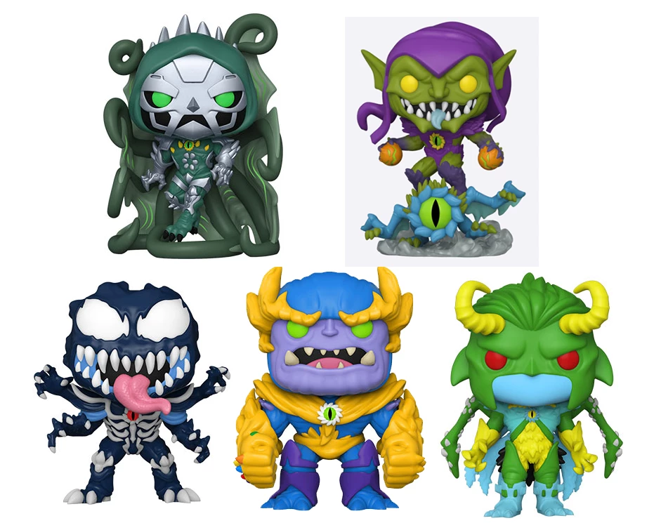 These Marvel Funko Pop! Vinyl Figures comes individually packaged in a window display box. Each measures approximately 3-3/4 inches tall. Set includes Dr. Doom, Green Goblin, Loki, Thanos, Venom.