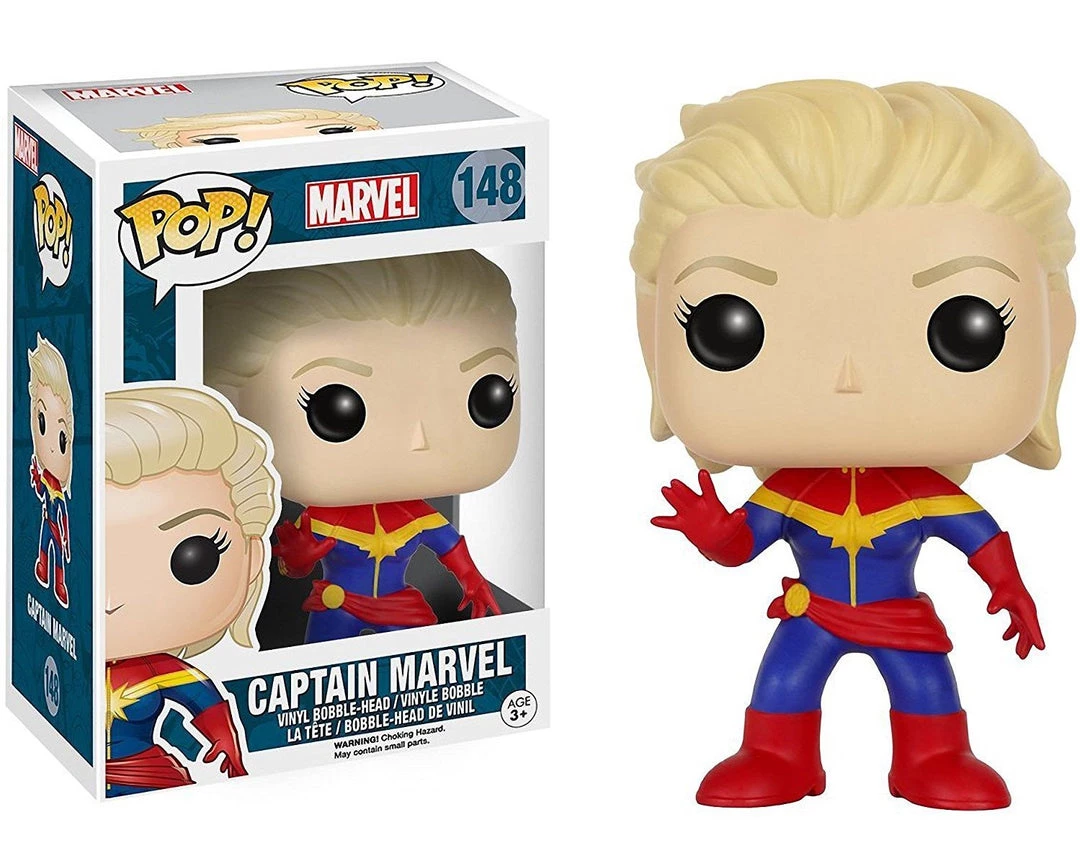 From the Marvel Universe, Unmasked Captain Marvel, as a stylized POP vinyl from Funko! Figure stands 3 3/4 inches and comes in a window display box. Check out the other Marvel figures from Funko! Collect them all!