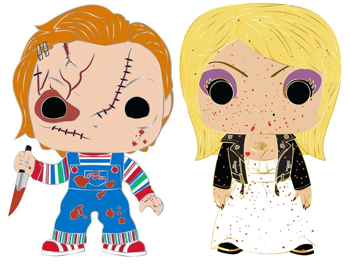 These Chucky Funko Pop! Pins comes individually packaged in a window display box. Each measures approximately 4 inches tall. Set Includes Chucky and Tiffany.