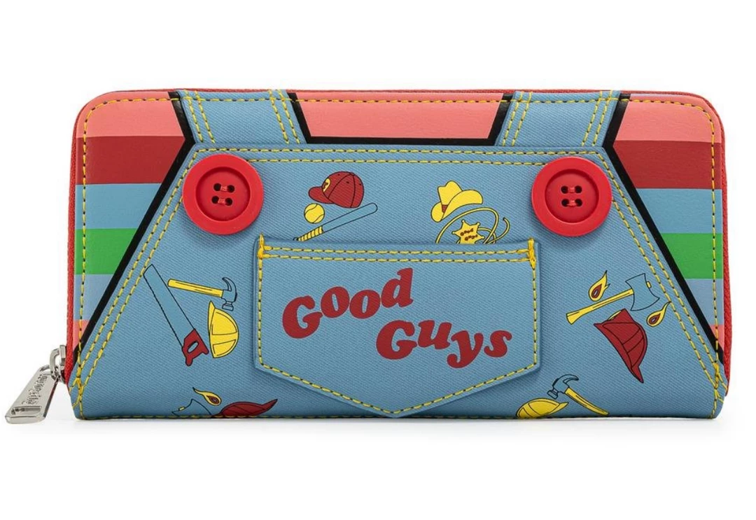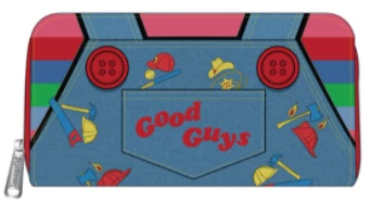 Wanna play? This Chucky Loungefly is definitely playful. You couldn’t even tell the difference between good or bad. This faux leather wallet features applique and printed details with real buttons!