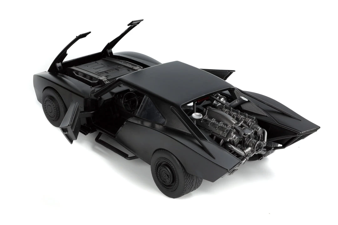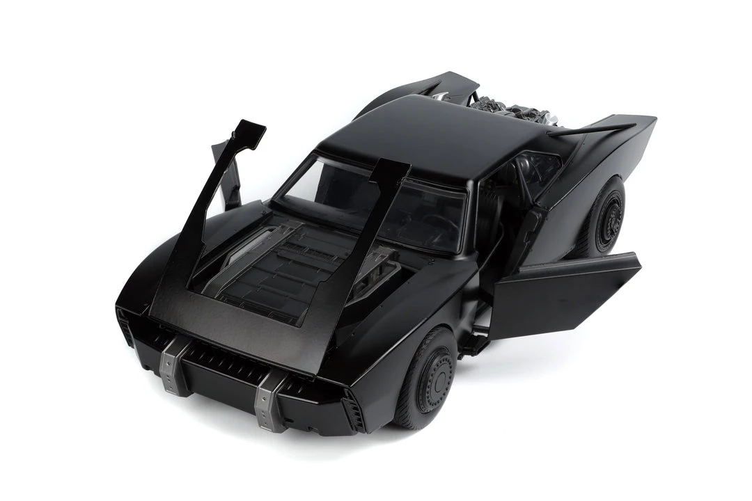 From Jada Toys.Ā He is Vengeance and you have his ride. This long-awaited Hollywood Ride fromĀ The BatmanĀ takes its styling cues directly from the film. Angular lines abound and hints of muscle car dominate this dramatic vehicle.Ā Ā Featuring working lights, opening doors and hood, theĀ BatmobileĀ also comes with a 3.75″ die-castĀ BatmanĀ figure with cape, cowl and insignia. Collect allĀ The BatmanĀ die-cast vehicles!