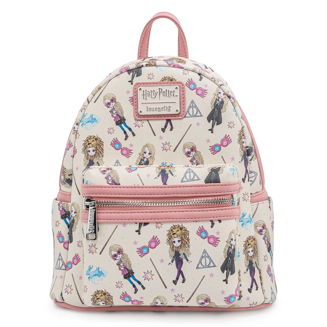 Luna tends to get teased for her eccentric accessories, but her style is carefully coordinated. Celebrate the cute and unconventional with Loungefly’s Harry Potter Luna Lovegood Mini Backpack. Within the all-over-print Luna is wearing her Hogwarts robes, her lion head hat, and spectrespecs-inspired outfit. Also scattered around the pattern is Luna’s wand, patronus (hare), spectrespecs, stars, and the Deathly Hallows symbol. Stand out from the crowd with the Luna Lovegood AOP Mini Backpack.