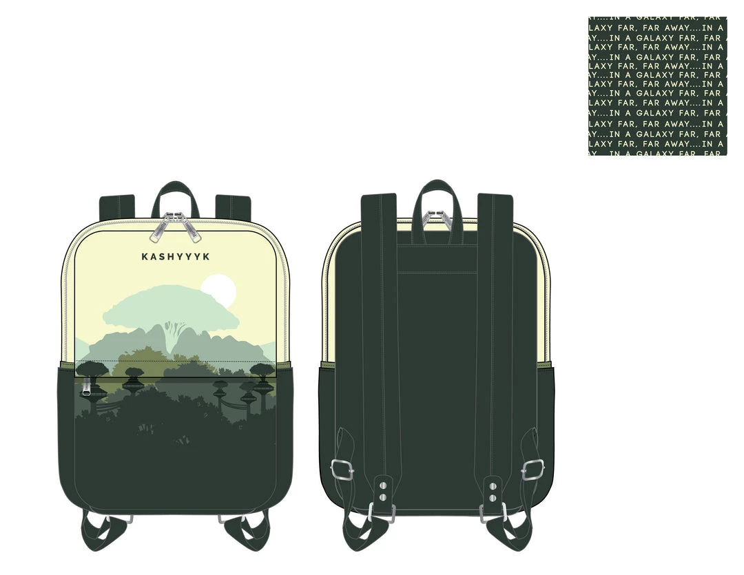 The Loungefly Star Wars Planets Series continues with the STAR WARSβ’ Lands Kashyyyk Square Mini Backpack. Kashyyyk is the Wookie home world covered in Wroshyr trees. The Kashyyyk backpack is the cool new accessory to carry your necessities. Continue your collection if you have already picked up the Tatooine, Hoth, Dagobah, Endor, and Naboo bags.