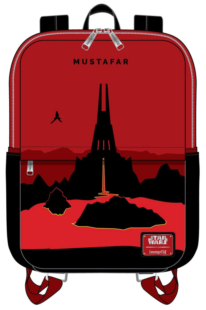 The Loungefly Star Wars Planets Series continues with the STAR WARSβ’ Lands Mustafar Square Mini Backpack. Located in the Atravis sector of the Outer Rim Territories, Mustafar is a small planet that was once a lush garden but now is volcanic and desolate. The Mustafar backpack is the hot new accessory to carry your necessities. Continue your collection if you have already picked up the Tatooine, Hoth, Dagobah, Endor, and Naboo bags.