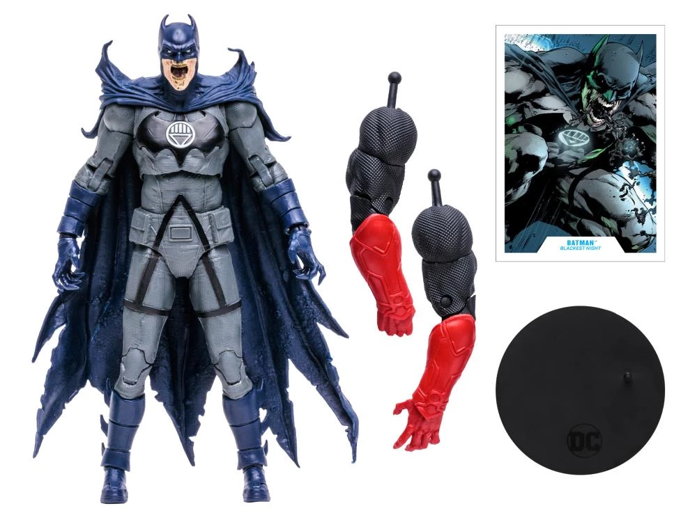 The DC Build-A Wave 8 Blackest Night Batman 7-Inch Scale Action Figure features Bruce Wayne with his look from theย Blackest Nightย comic book series. Batman is designed with ultra articulation with up to 22 moving parts for full range of posing and play. Batman comes with a display base. A collectable art card with photography on the front, and character biography on the back is also included. Batman comes with a piece of Red Lantern Atrocitus. Collect all 4 figures in Wave 8 to build an oversized Red Lantern Atrocitus action figure (each sold separately)!