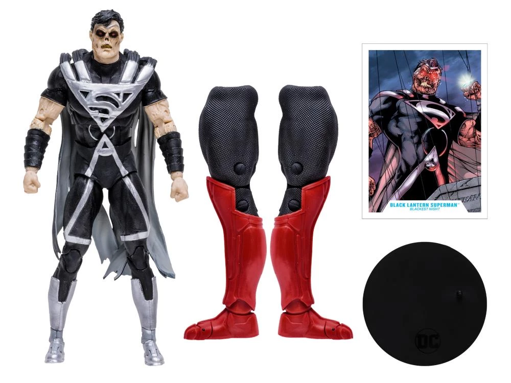 The DC Build-A Wave 8 Blackest Night Black Lantern Superman 7-Inch Scale Action Figure features him with his look from theย Blackest Nightย comic book series. Superman is designed with ultra articulation with up to 22 moving parts for full range of posing and play. Superman comes with display a base. A collectable art card with photography on the front, and character biography on the back is also included. Superman comes with a piece of Red Lantern Atrocitus. Collect all 4 figures in Wave 8 to build an oversized Red Lantern Atrocitus action figure (each sold separately)!
