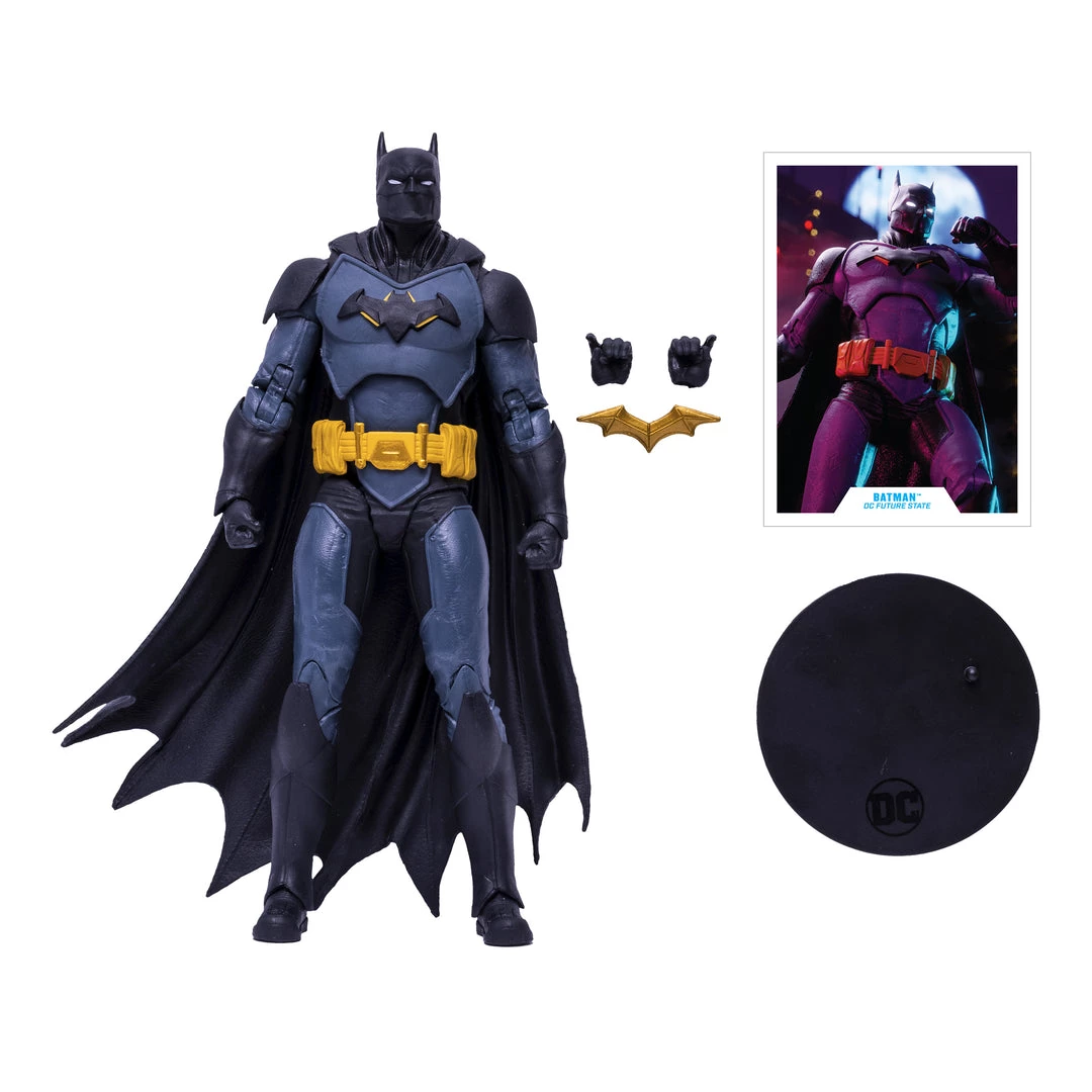 From TMP/McFarlane’s Toys. With the Magistrate ruling the city, and the Dark Knight gone, Gotham needs a new hero-enter Tim Fox, the Next Batman! This Incredibly detailed 7″ scale figure is designed with Ultra Articulation with up to 22 moving parts for full range of posing and play. Tim Fox comes with alternate hands, a batarang and a base, plus an included collectible art card with figure photography on the front, and character biography on the back. Collect all McFarlane Toys DC Multiverse Figures!