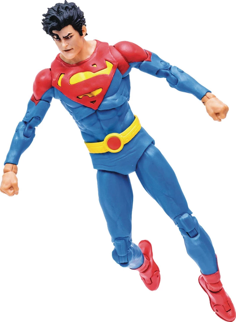The DC Multiverse Superman Jonathan Kent Future State 7-Inch Scale Action Figure features up to 22 points of articulation, comes packaged in a blister box and comes with a collectable art card that features comic artwork on the front, and character biography on the back. Jon Kent is based on his look in the DC Future State comic book series and comes with an alternate pair of hands and a flight stand base.