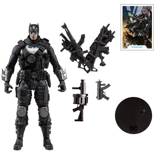 Ripped from Batman’s greatest nightmares, The Grim Knight is his world’s most dangerous vigilante, unafraid to use any weapon and go to any lengths to stop those he deems worthy of death. Armed with the finest arsenal Wayne money can buy, he is now one of the deadliest Dark Knights in existence, second only to The Batman Who Laughs. The DC Multiverse Dark Nights Metal The Grim Knight 7-Inch Action Figure features 22 points of articulation, comes with a display base, and comes packaged in window box packaging.