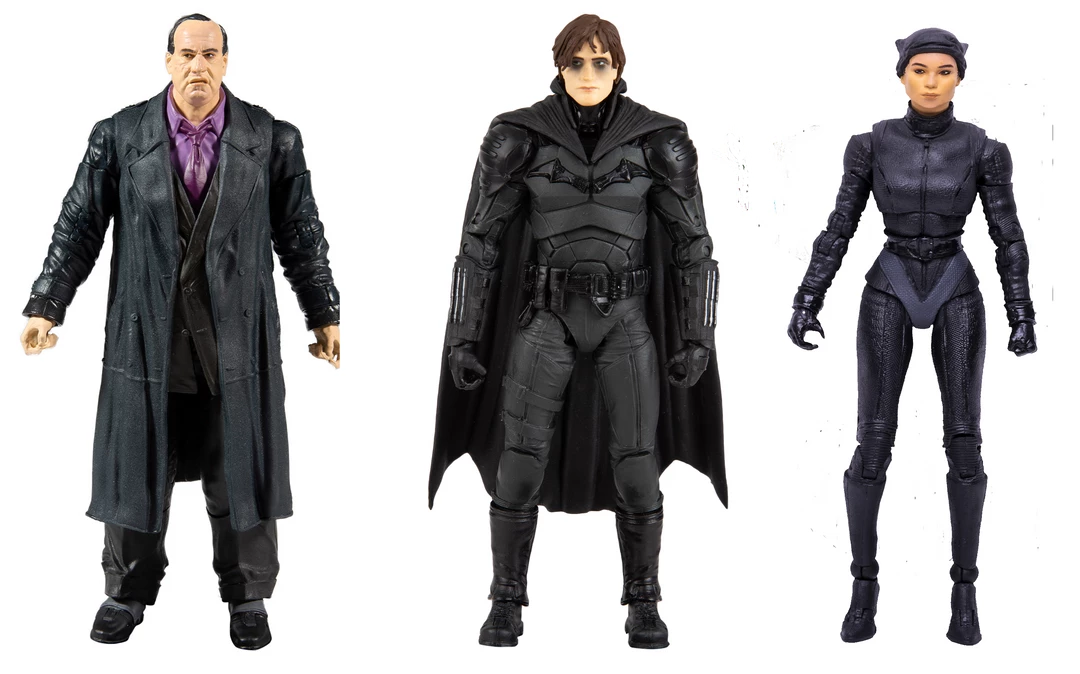 rom TMP/McFarlane’s Toys. The Batman is two years into his role as Gotham’s embodiment of vengeance – a nocturnal vigilante who strikes fear in the hearts of criminals. These Incredibly detailed 7″ scale figures based off the upcoming DC movie The Batman are Designed with Ultra Articulation with up to 22 moving parts for full range of posing and play! Each figure includes a character specific accessory, display base, and collectible art card with figure photography on the front, and character biography on the back.