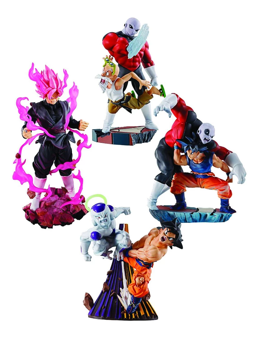 Bandai’s Dracap ReBirth lets you collect some of Dragon Ball Super‘s iconic characters and scenes. The amazingly sculpted and painted mini-figure allows you to show off your favorite character’s signature scene. Included in this blind box assortment are the battle between Goku and Jiren, Goku and Frieza, Goku Black in Super Saiyan Rose form, and Master Roshi and Jiren. Collect all 4 styles. Each style measures about 3″ to 4″ tall.