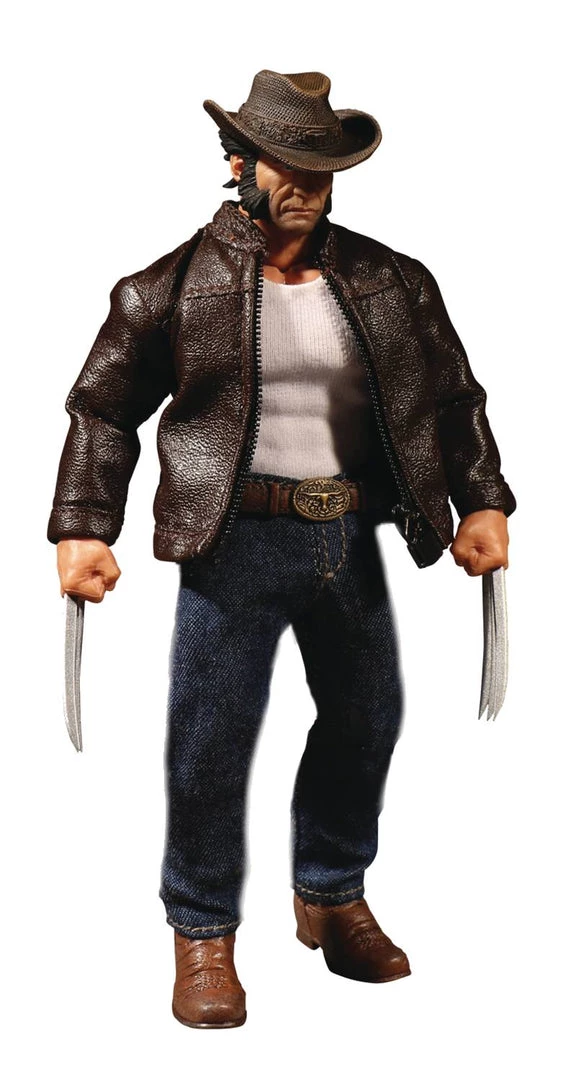Soldier. Weapon. Mutant. The One:12 Collective Logan figure invokes his rugged and feral nature. He features three head portraits, a dog tag, a fitted tank-top with jeans, a belt with a western-style buckle, a leather-like jacket with a functional zipper, and cowboy boots. Logan comes with six interchangeable hands – both with and without his trademark claws extended.