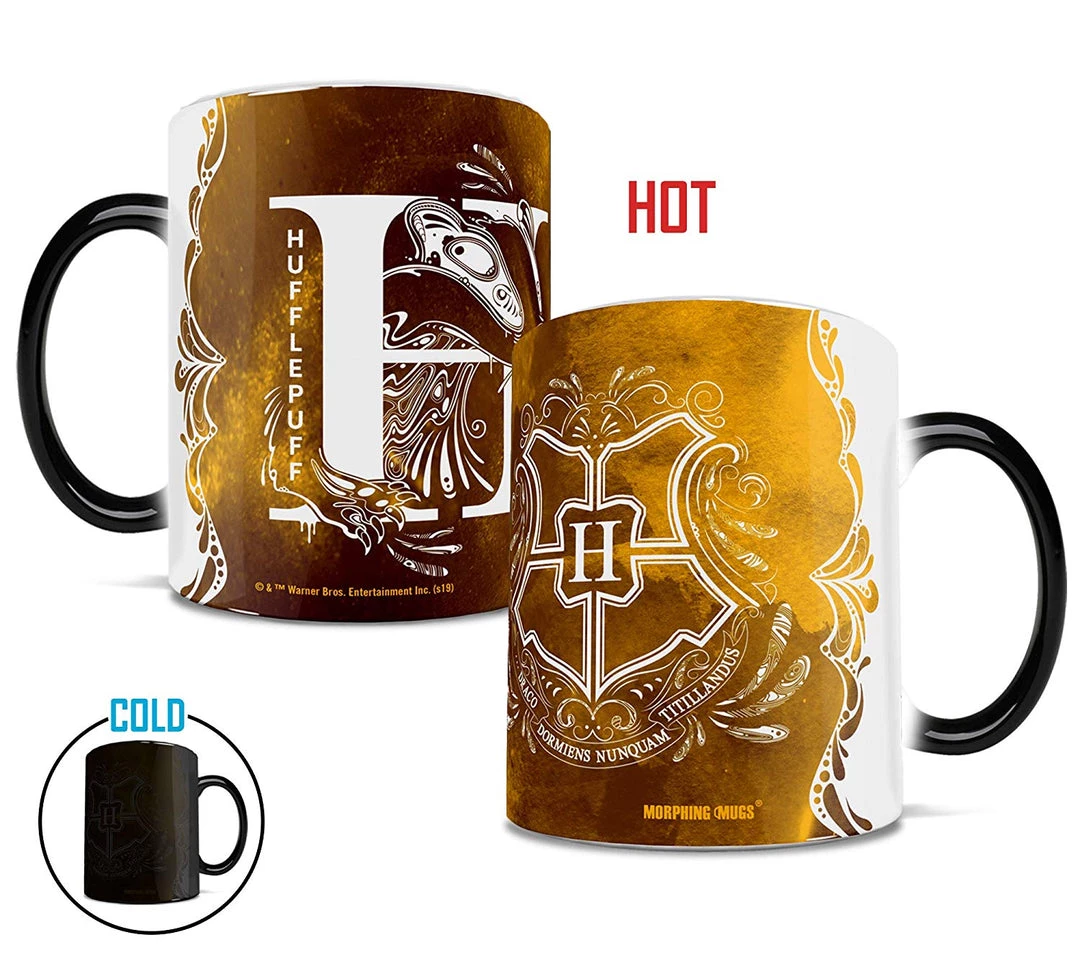 Show your support for Hufflepuff with this Harry Potter Morphing Mugs® collectible. When you add your hot drink, the mug shows the Hufflepuff yellow, complete with an outline of a badger magically created with water and the Hogwarts crest.
