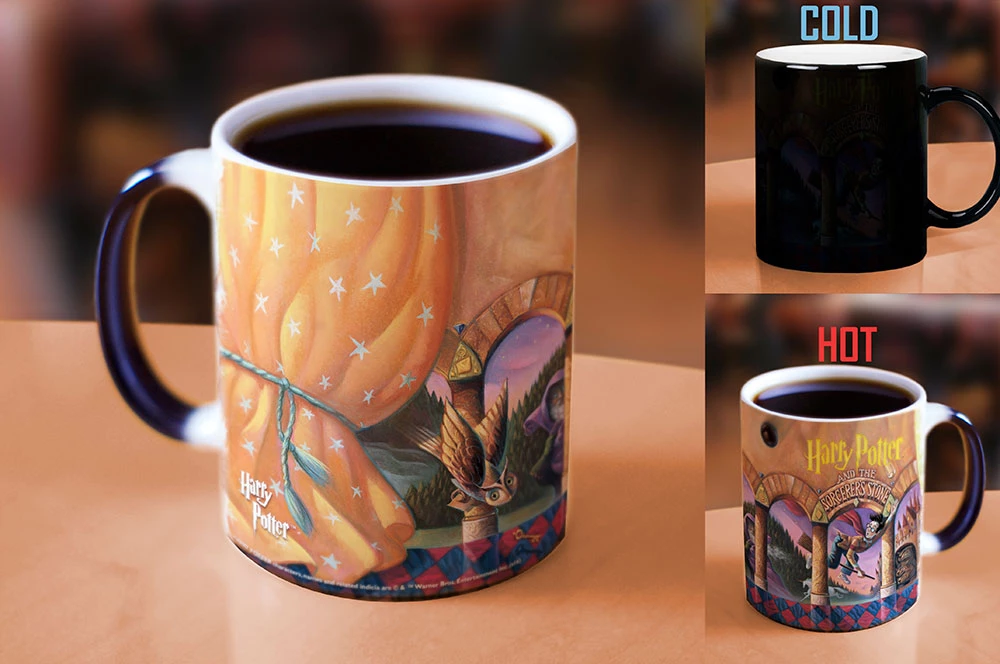 Show your love of the Harry Potter book series with this Morphing Mugs™ heat-sensitive mug. This mug features the official cover art of Harry Potter and the Sorcerer’s Stone. The exterior of this 11oz mug transforms from black as hot liquid is added, revealing the artwork in full vivid colors.