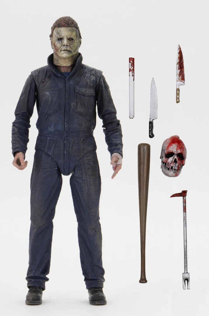 This screen-accurate Michael Myers action figure stands in 7″ scale and comes with knives, bat, bulb, skull mask, Halligan bar and interchangeable head and hands… and he’ll need it all when the Strode women set out to end his evil reign of terror.