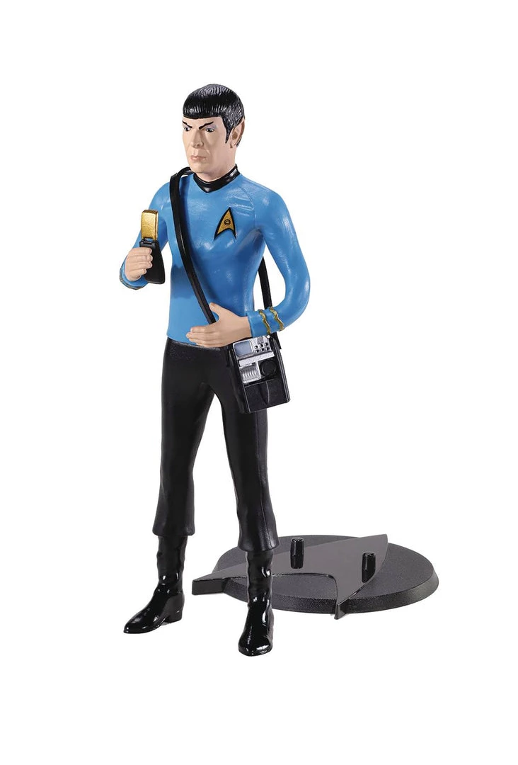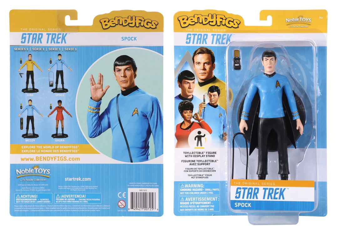 From The Noble Collection. A Toyllectible line of figures with highly-detailed sculpts feature a bendable form factor to pose and display! Each Star Strek Bendy figure includes real cloth clothing and comes with character specific accessories, plus a removable display stand. Measures approximately 7″ tall. Collect Kirk, McCoy, Uhura and Spock.