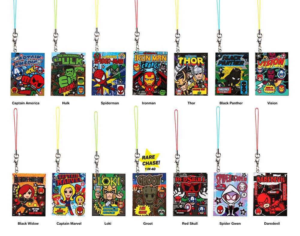 - Collect all 14! Captain America/ iron Man/ black Panther/ Thor/ Hulk/ Groot (rare Chase!!)/ black Widow/ Loki/ Spiderman/ red skull/ spider Gwen/ Captain Marvel/ vision/ Daredevil