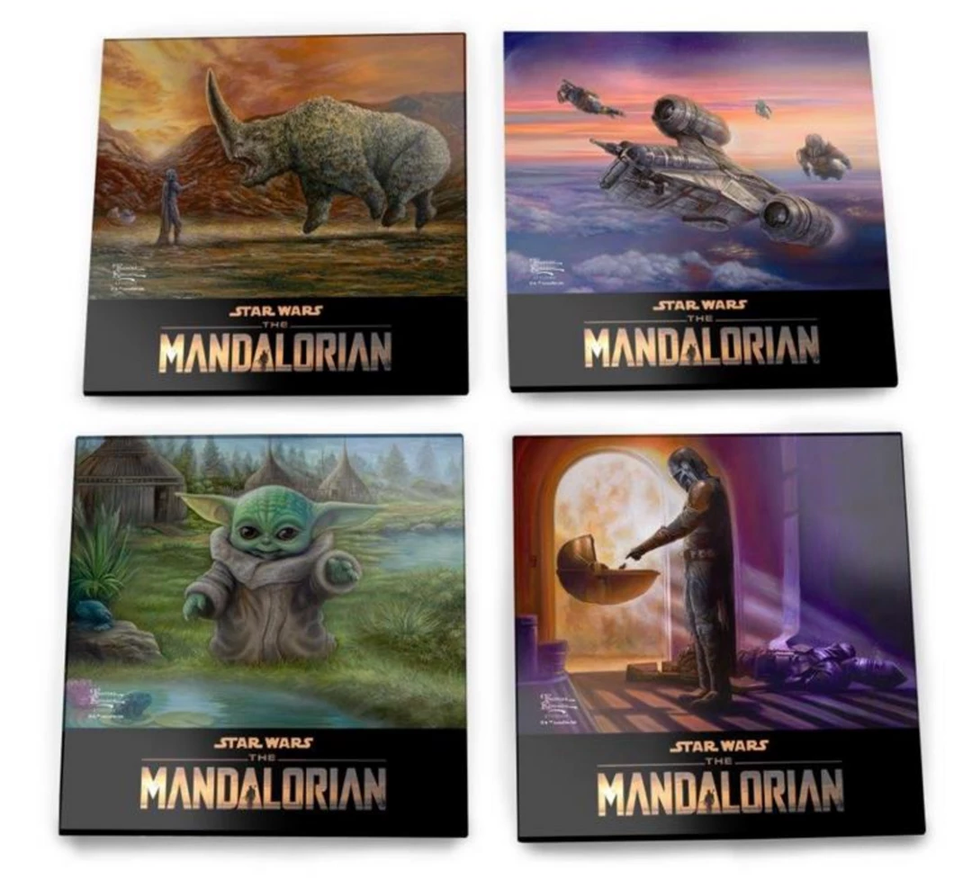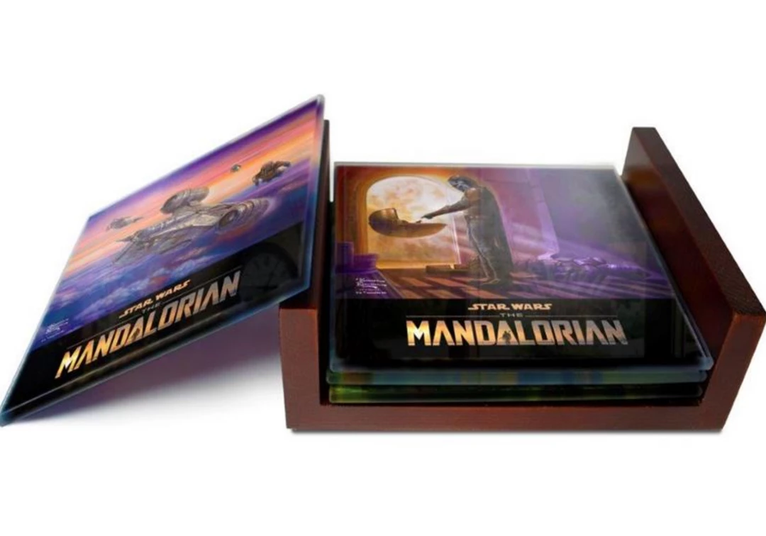 These will send any Star Wars lover into a frenzy! These 4” x4” coasters are collection of scenes from Star Wars The Mandalorian. The scenes include:
